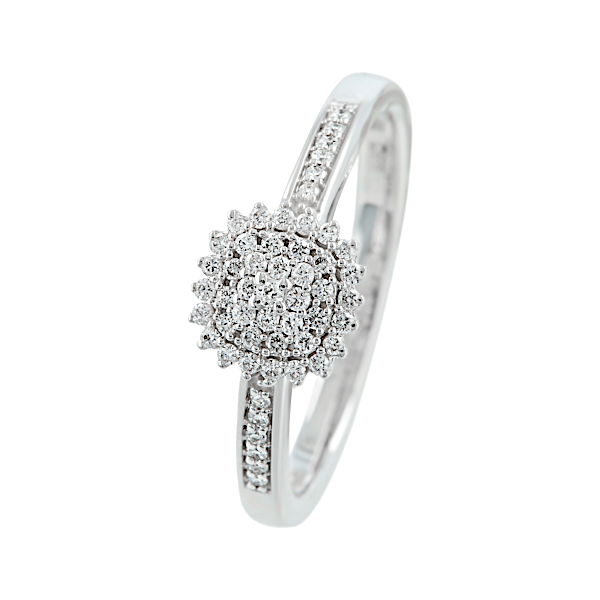 Särav teemantidega kaunistatud valgest kullast sõrmus, mis sobib ka kihlasõrmuseks. Kuldsõrmuse teemantide kogukaal on 0.154 ct.