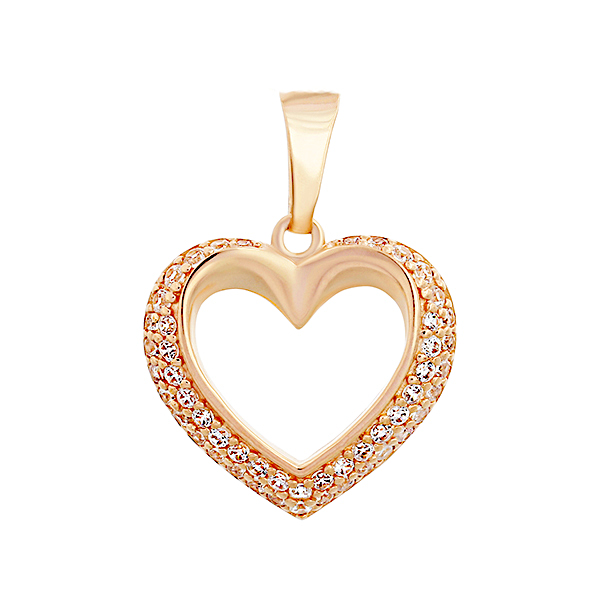 Kaunis südamekujuline kuldripats, mida ehivad säravad valged tsirkoonid. Ripatsi aasa suurus on 6 mm.