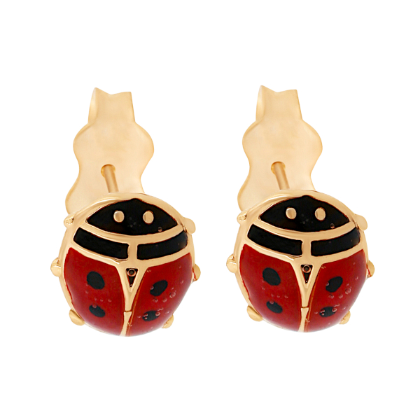 Toredad lepatriinudega kullast kõrvarõngad. Kõrvarõngad on pealt emailitud ja sobivad ka lastele.