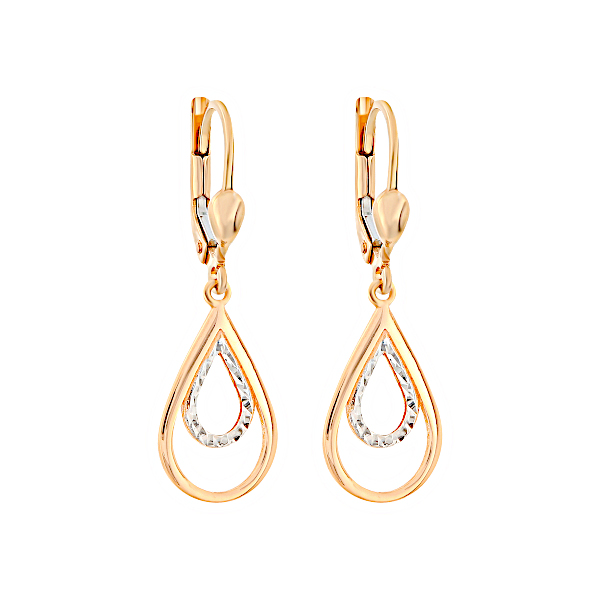 Kaunid rippuvad kõrvarõngad, mis on kaunistatud valge kullaga.