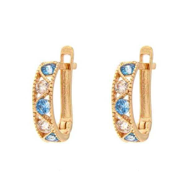 Kaunid väiksemad helesiniste ja valgete tsirkoonidega inglise lukuga kuldkõrvarõngad, mis sobivad igapäevaseks kandmiseks. Kõrvarõngad on sobilikud ka lastele.