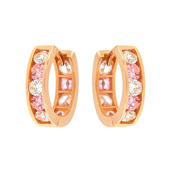 Väiksemad valgete ja roosade tsirkoonidega kaunistatud kuldkõrvarõngad, mis on sobilikud ka lastele.