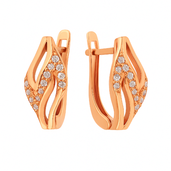 Säravate valgete tsirkoonidega kaunistatud inglise lukuga kuldkõrvarõngad.
