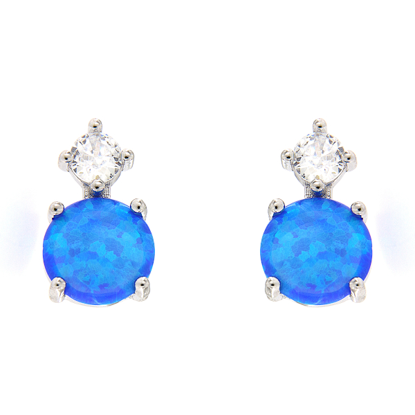 Hõbekõrvarõngad, mis on kaunistatud valge tsirkooni ja sinise sünteetilise opaaliga. Hõbekõrvarõngastel on klassikaline liblikkinnitus.