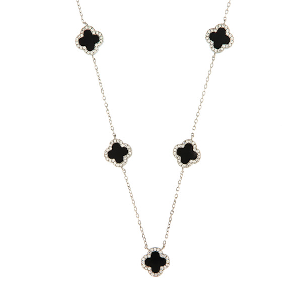 Oonüksi ja tsirkoonidega kaunistatud hõbedast kaelakee. Keti pikkus on reguleeritav.