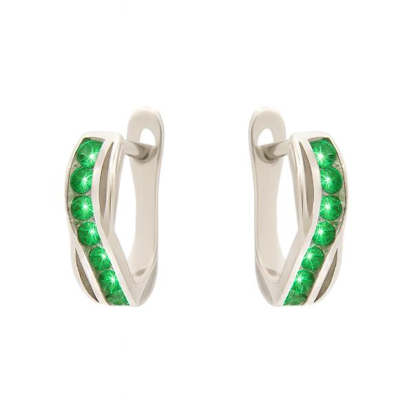 Väiksemad roheliste tsirkoonidega kaunistatud inglise lukuga hõbekõrvarõngad, mis on sobilikud ka lastele.