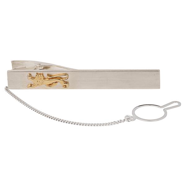 Esinduslik kullatud vapilõviga hõbedast lipsunõel.