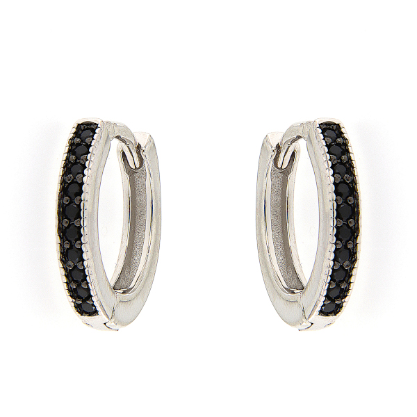Kaunid mustade tsirkoonidega kaunistatud väiksemad hõberõngad. Hõbekõrvarõngad on sobilikud kandmiseks nii pidu- kui ka argipäeval.