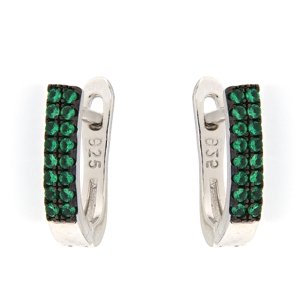 Kaunid roheliste tsirkoonidega kaunistatud inglise lukuga hõbekõrvarõngad, mis on sobilikud kandmiseks nii pidu- kui ka argipäeval.