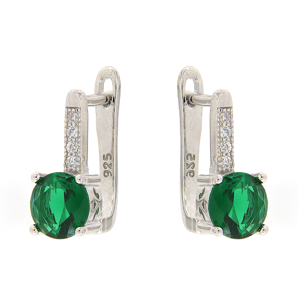 Kaunid roheliste ja valgete tsirkoonidega kaunistatud inglise lukuga hõbekõrvarõngad, mis on sobilikud kandmiseks nii pidu- kui ka argipäeval.