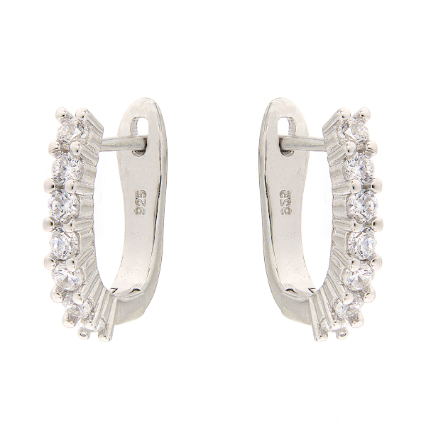 Kaunid valgete tsirkoonidega kaunistatud inglise lukuga hõbekõrvarõngad, mis on sobilikud kandmiseks nii pidu- kui ka argipäeval.