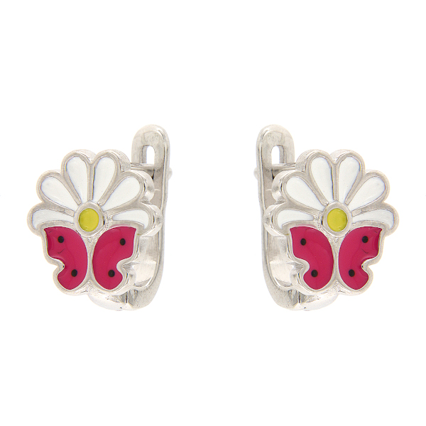 Väiksemad värvilise emailiga kaunistatud inglise lukuga hõbekõrvarõngad, mis on sobilikud ka lastele.