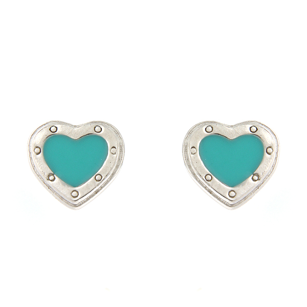 Armsad südamekujulised emailiga kaunistatud hõbekõrvarõngad, millel on liblikkinnitus.