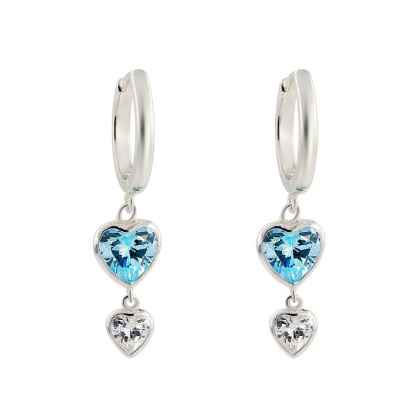 Säravate helesiniste ja valgete tsirkoonidega kaunistatud hõbekõrvarõngad, mille rõngaosa läbimõõt on 13 mm.