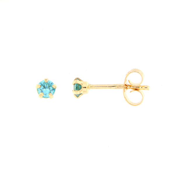Klassikalised kollasest kullast helesinise tsirkooniga kõrvarõngad, mille kivi läbimõõt on 3 mm. Kuldkõrvarõngad on sobilikud ka lastele. Kõrvarõngastel on liblikkinnitus.