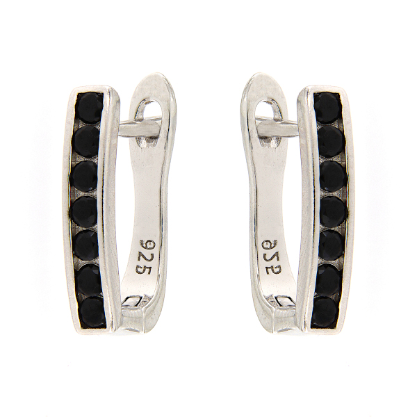 Kaunid mustade tsirkoonidega kaunistatud inglise lukuga hõbekõrvarõngad, mis on sobilikud igapäevaseks kandmiseks.
