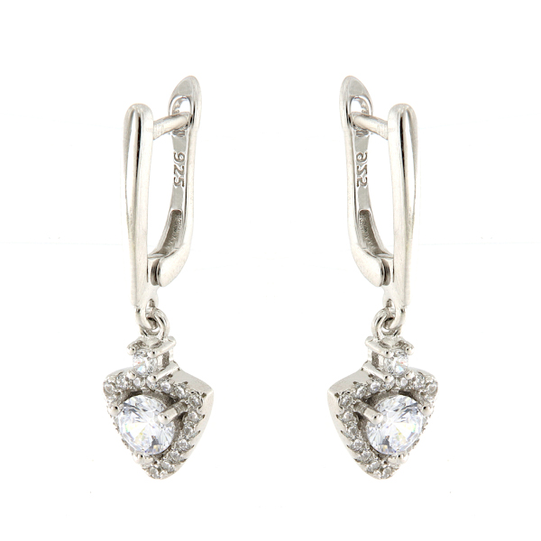 Kaunid valgete tsirkoonidega kaunistatud rippuvad inglise lukuga hõbekõrvarõngad.