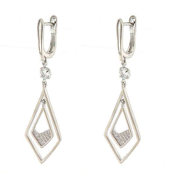 Kaunid valgete tsirkoonidega kaunistatud rippuvad inglise lukuga hõbekõrvarõngad.