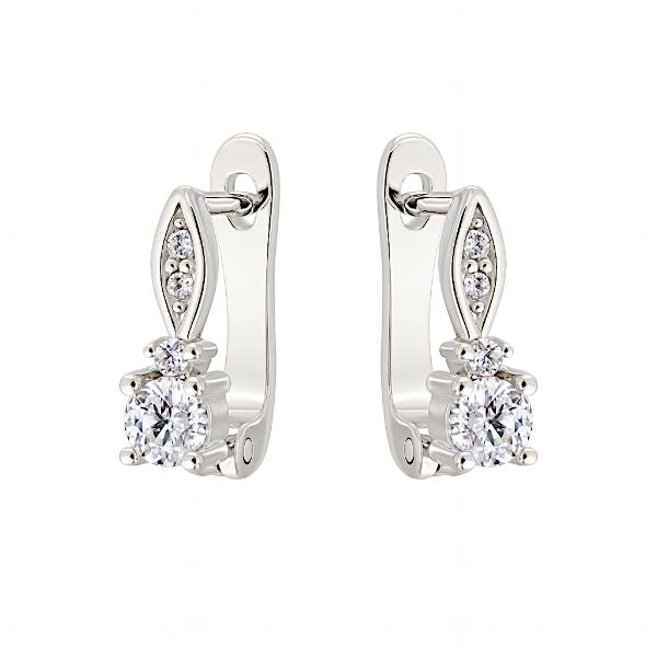 Väiksemad valgete tsirkoonidega kaunistatud inglise lukuga hõbekõrvarõngad, mis on sobilikud ka lastele.
