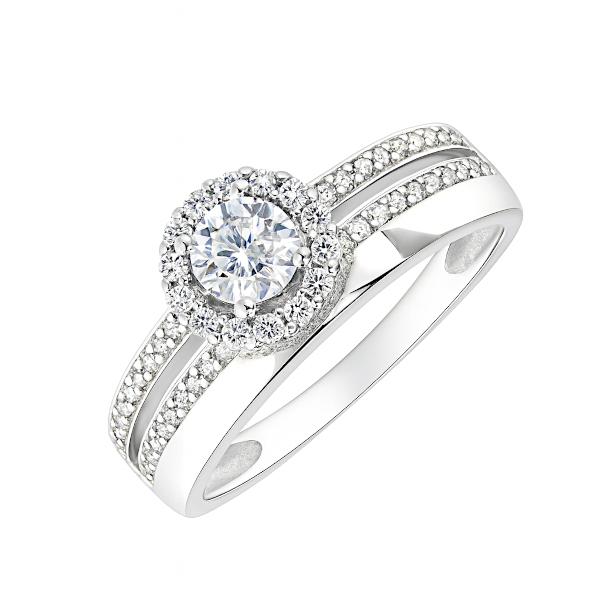 Säravate valgete tsirkoonidega kaunistatud hõbesõrmus.