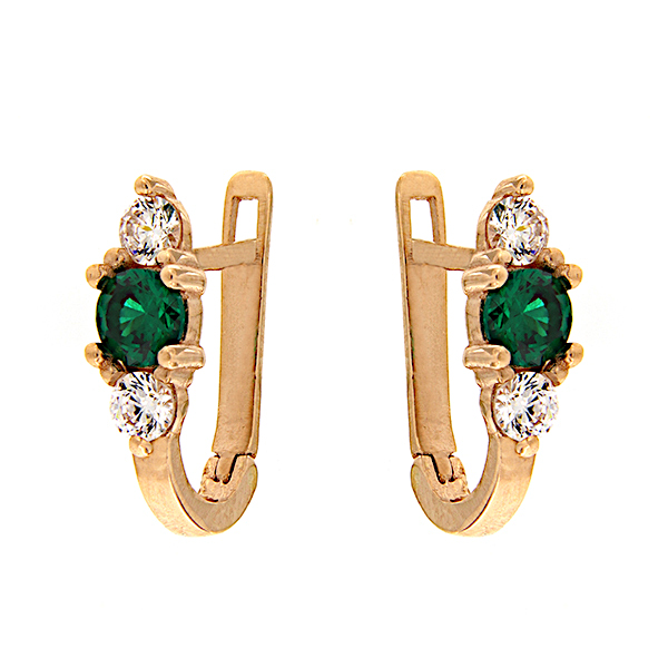 Säravate roheliste ja valgete tsirkoonidega kaunistatud inglise lukuga kuldkõrvarõngad.