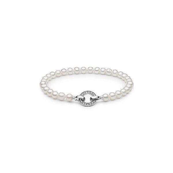 Kaunis ja stiilne magevee pärlitega käekett, mille lukku kaunistavad tsirkoonid.