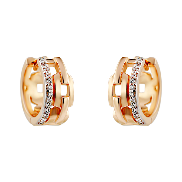 Kaunid valgete tsirkoonidega kaunistatud kullatud hõbekõrvarõngad. Kõrvarõnga läbimõõt on 13 mm.