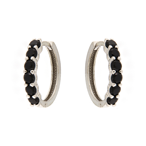 Mustade tsirkoonidega kaunistatud hõbekõrvarõngad.