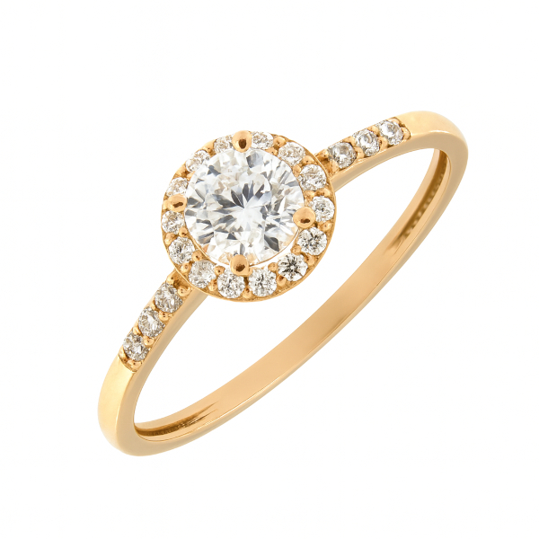 Säravate valgete tsirkoonidega kaunistatud kuldsõrmus.