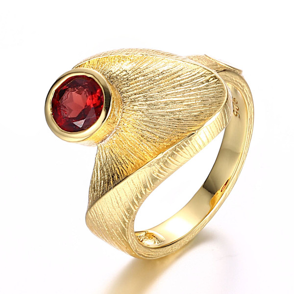 Kaunis Alberto Martini sõrmus on valmistatud hõbedast ning viimistletud luksusliku kullakattega, mis annab ehtele sooja ja elegantse sära. Sõrmust kaunistab sügavpunane granaatkivi, mis lisab sellele iseloomu ja pilkupüüdvust.