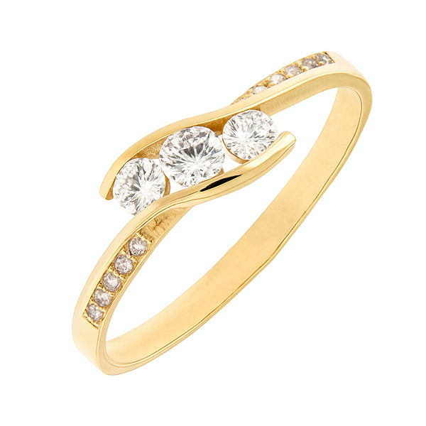 Säravate valgete tsirkoonidega kaunistatud kuldsõrmus.