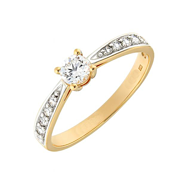Säravate valgete tsirkoonidega kaunistatud kuldsõrmus.