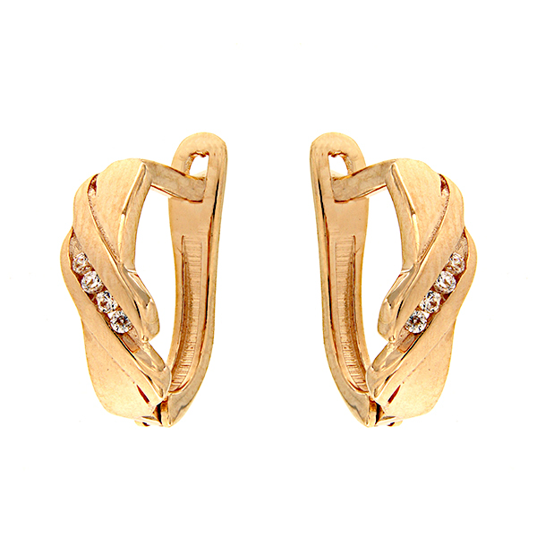 Säravate valgete tsirkoonidega kaunistatud inglise lukuga kuldkõrvarõngad.