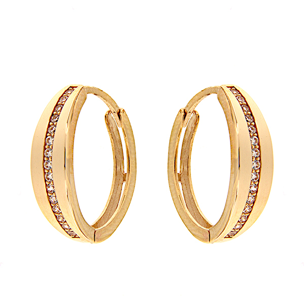 Säravate valgete tsirkoonidega kaunistatud kuldkõrvarõngad.