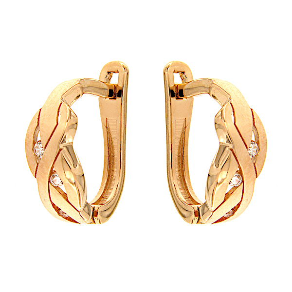 Säravate valgete tsirkoonidega kaunistatud inglise lukuga kuldkõrvarõngad.