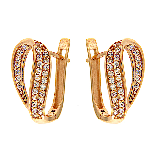 Säravate valgete tsirkoonidega kaunistatud inglise lukuga kuldkõrvarõngad.