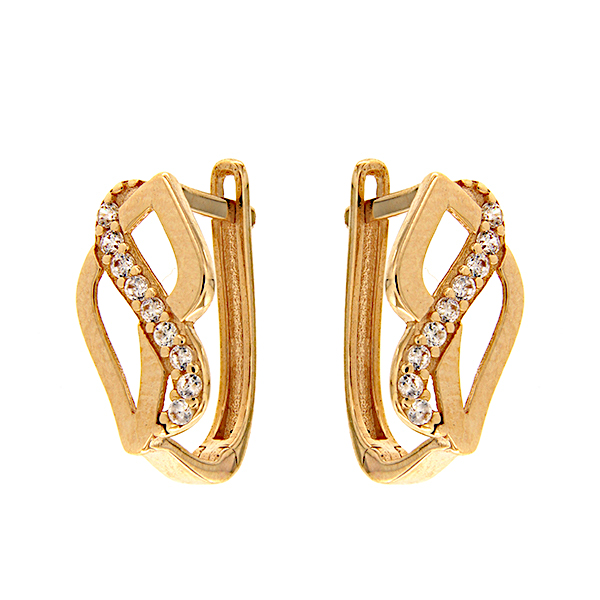 Säravate valgete tsirkoonidega kaunistatud inglise lukuga kuldkõrvarõngad.
