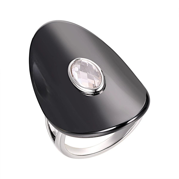 Elegantne hõbesõrmus, milles kohtuvad modernne keraamika ja särav tsirkoon.