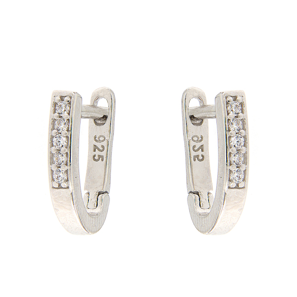 Kaunid valgete tsirkoonidega kaunistatud inglise lukuga hõbekõrvarõngad, mis on sobilikud igapäevaseks kandmiseks.