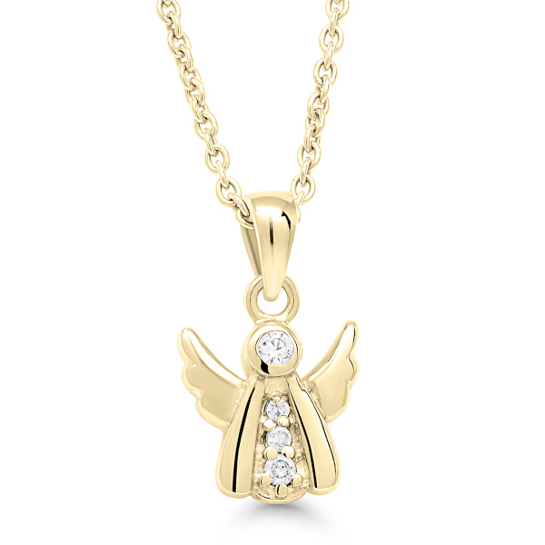 Ingli kujutisega kaunis kullatud hõbedast kaelakee ripatsiga. Ripatsit kaunistavad roosad tsirkoonid. Kett on reguleeritava pikkusega ja sobib eelkõige lastele.
