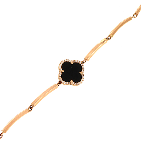 Kaunis ja pidulik lillemotiivi, tsirkoonide ja oonüksiga kaunistatud kullast käekett. Keti pikkus on reguleeritav vahemikus 17,5-20 cm.