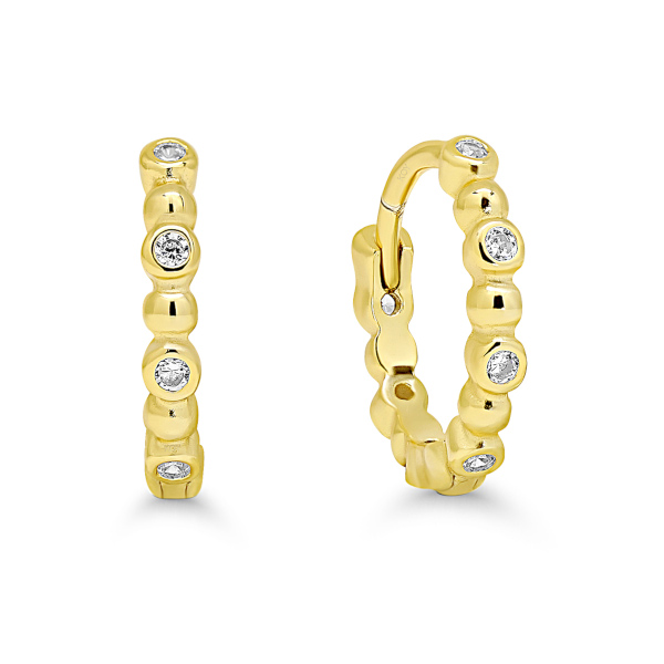 Kaunid tsirkoonidega kaunistatud kullatud hõbekõrvarõngad. Rõnga läbimõõt 9,8 mm.