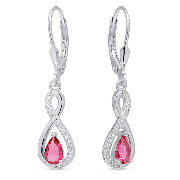 Kaunid hõbekõrvarõngad, mis on kaunistatud punaste tsirkoonidega.