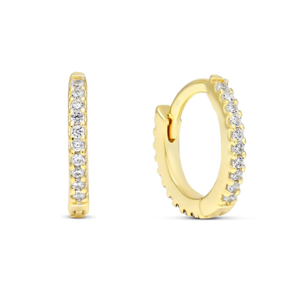 Tsirkoonidega kaunistatud kullatud hõbekõrvarõngad, mille läbimõõt on 11 mm.
