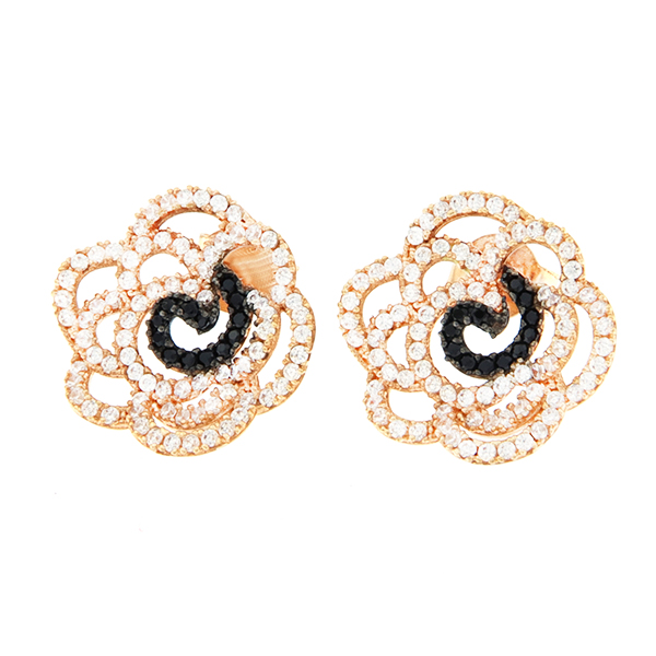 Väga erilised ja kaunid kõrvarõngad roosast kullast, mis on kaunistatud valgete ja mustade tsirkoonidega. Kõrvarõngastel on klassikaline liblikkinnitus.