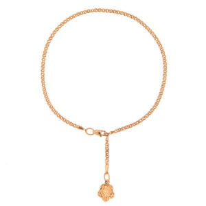 Kaunis roosast kullast jalakett pikkusega 22 või 25 cm. Ketti kaunistab valgest kullast süda.