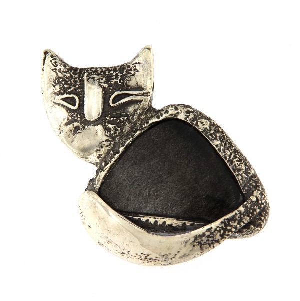 Tore kassikujuline hõbepross, mis on kaunistatud obsidiaaniga.