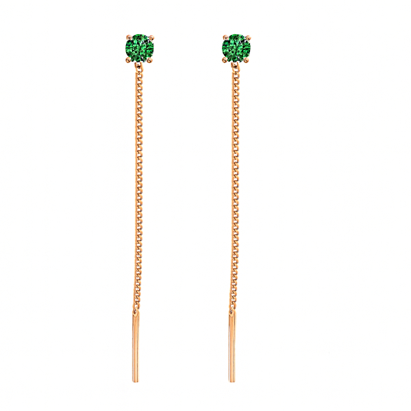Klassikalised rohelise tsirkooni ja ketiga kuldkõrvarõngad. Tsirkooni läbimõõt on 3 mm.