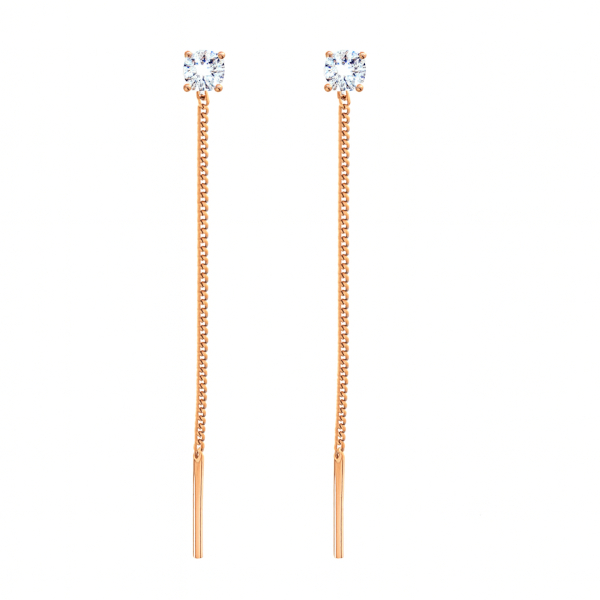 Klassikalised valge tsirkooni ja ketiga kuldkõrvarõngad. Tsirkooni läbimõõt on 3 mm.
