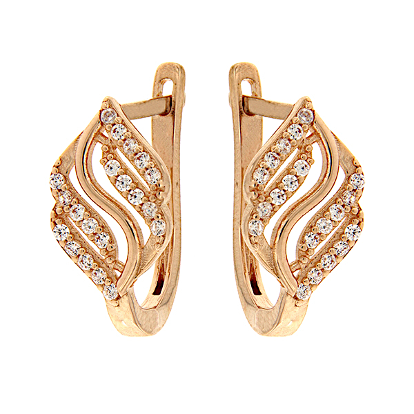 Säravate valgete tsirkoonidega kaunistatud inglise lukuga kuldkõrvarõngad.